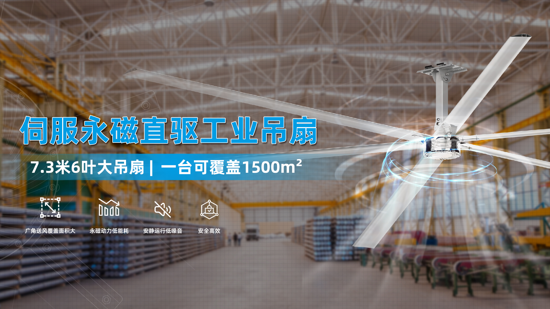 興泰伺服永磁直驅(qū)工業(yè)大風(fēng)扇直徑可達(dá)7.3米,應(yīng)用空氣動(dòng)力學(xué)原理和先進(jìn)工藝制造,風(fēng)扇僅用1.5Kw的功率就可以驅(qū)動(dòng)大量的空氣,產(chǎn)生超大面積的自然微風(fēng)系統(tǒng),起到環(huán)境通風(fēng)和降溫的雙重功能,堪稱(chēng)高大空間通風(fēng)降溫的完美解決方案。
